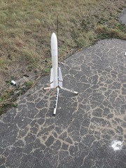 Die 60mm Modellrakete ist heute das erste Mal und das zweite Mal gestartet. Ich hatte einfach Pech, ein Motor, D12-5, war ein Durchzünder beim zweiten Start. Der Motor hat das Körperrohr zerstört. Ich werde die Modellrakete nicht wieder aufbauen. Die Reste nehme ich für eine neue Modellrakete.