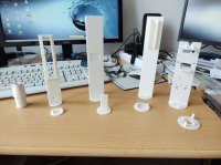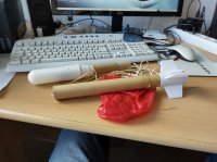 September 2021 - manchmal wird eine ganze Menge gedruckt. Ich habe diverse Teile für meine Modellraketen gedruckt, von links nach rechts, Treibsatzhalterung für eine 3D Rakete, Elektronikhalterung für Stephan Two, 2 Möglichkeiten von einer Nutzlast für die 50mm Modellraketen, Elektronikhalterung für die Stephan One. Die nächsten Bilder, die Teile nach einem Einsatz.