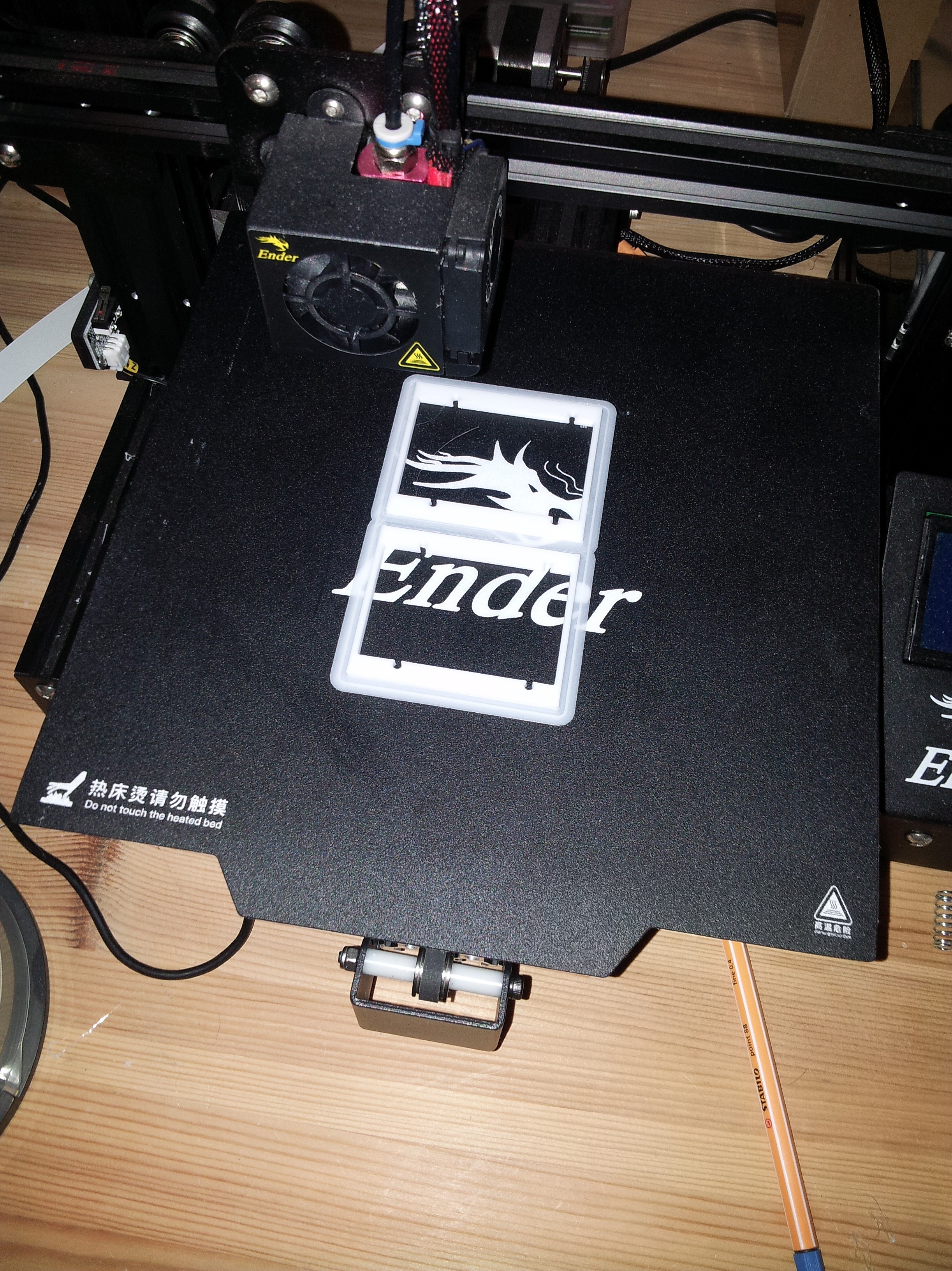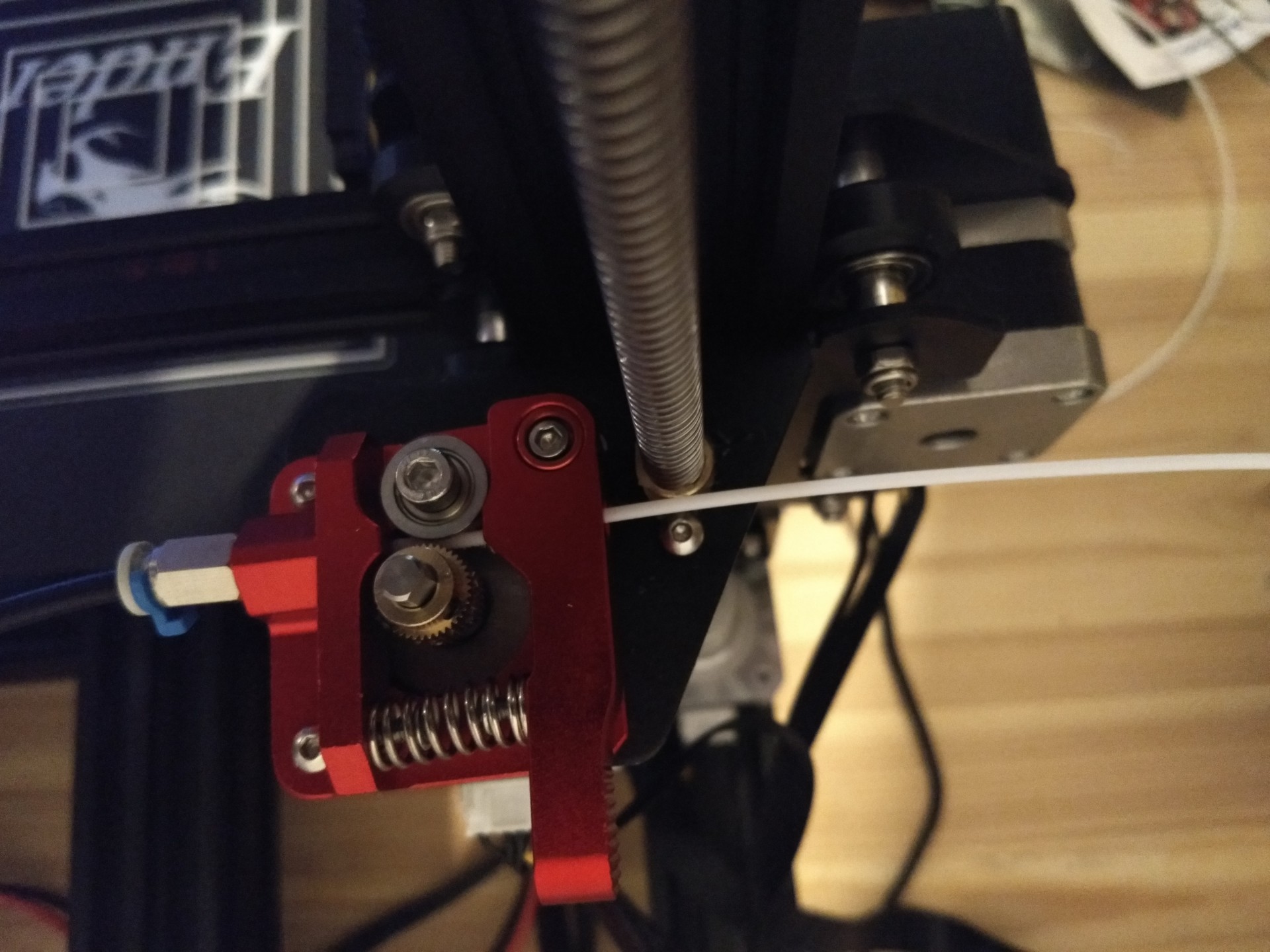 Am Sonntag abend hatte ich dann die Ruhe für den erstem Druck, leider ist mir das Filament an der Spule hängen geblieben, so das ich abbrechen musste.