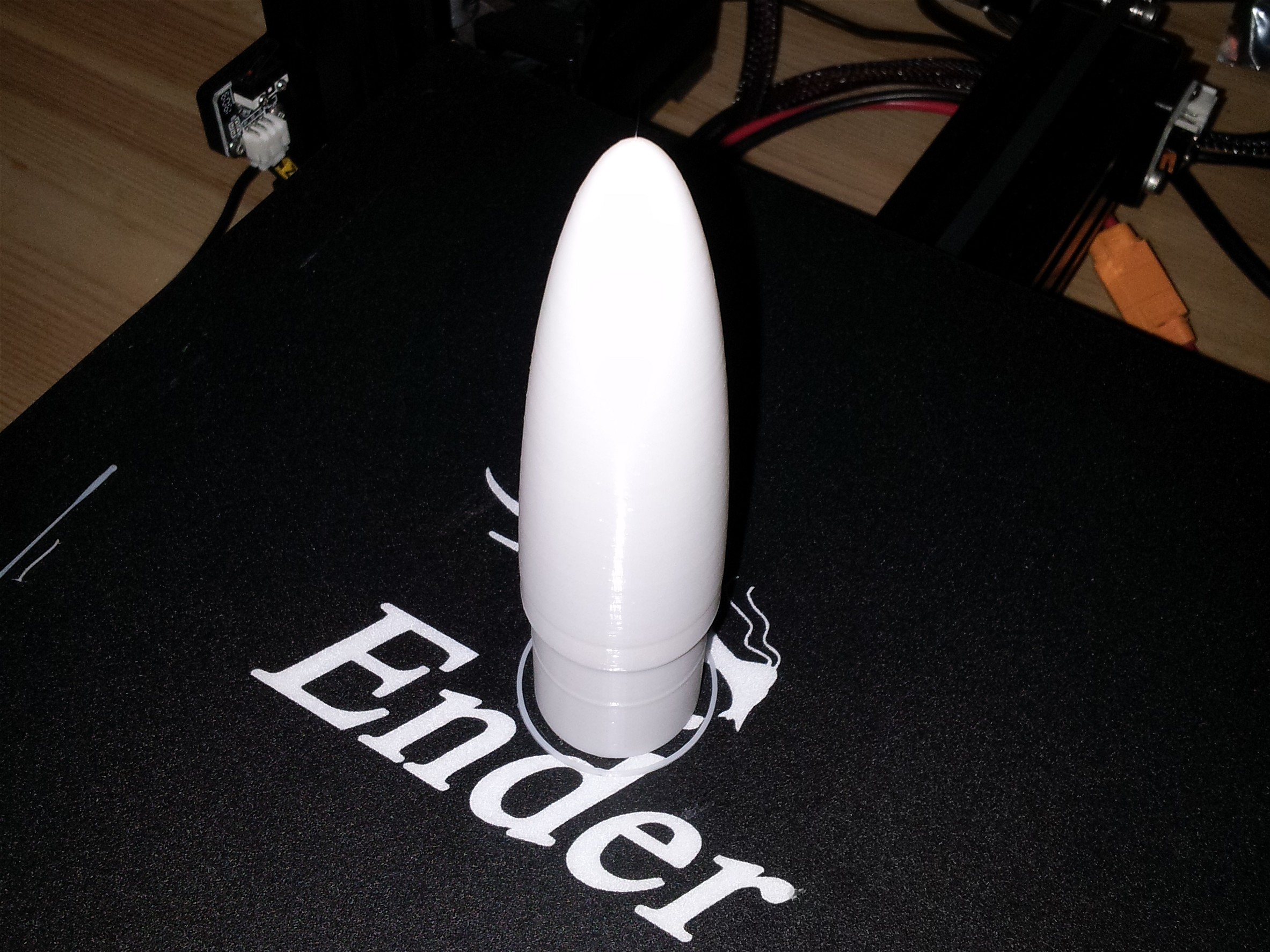 22.04. eine Spitze für eine Modellrakete gedruckt, nicht perfekt, aber fast perfekt.