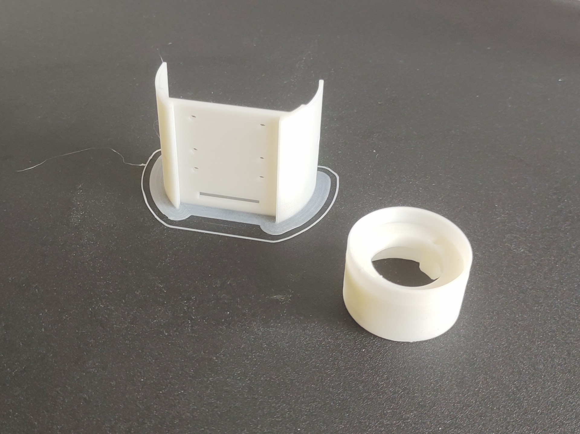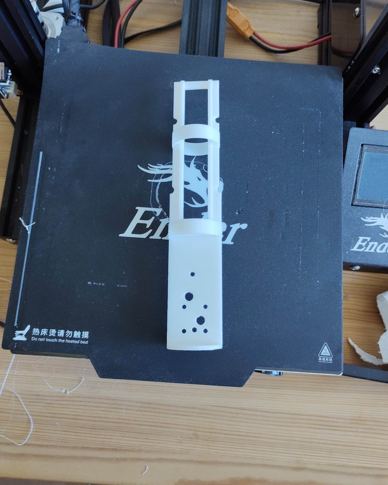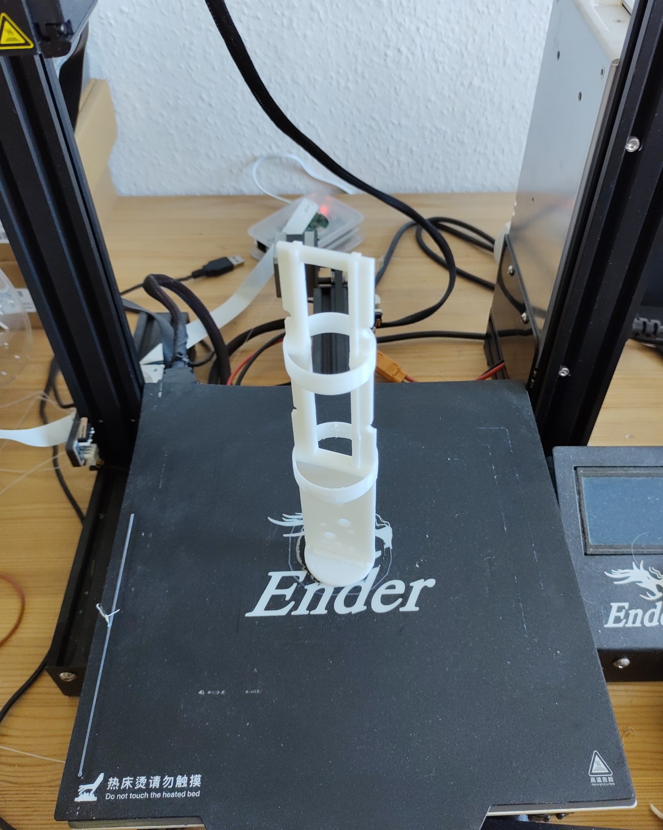 05.04.2022 - Elektronikträger für Modellrakete "Stephan 2" über Nacht neu gedruckt (Entwurf, Drucker, fertig (Support entfernt, Bild1, Bild2)).