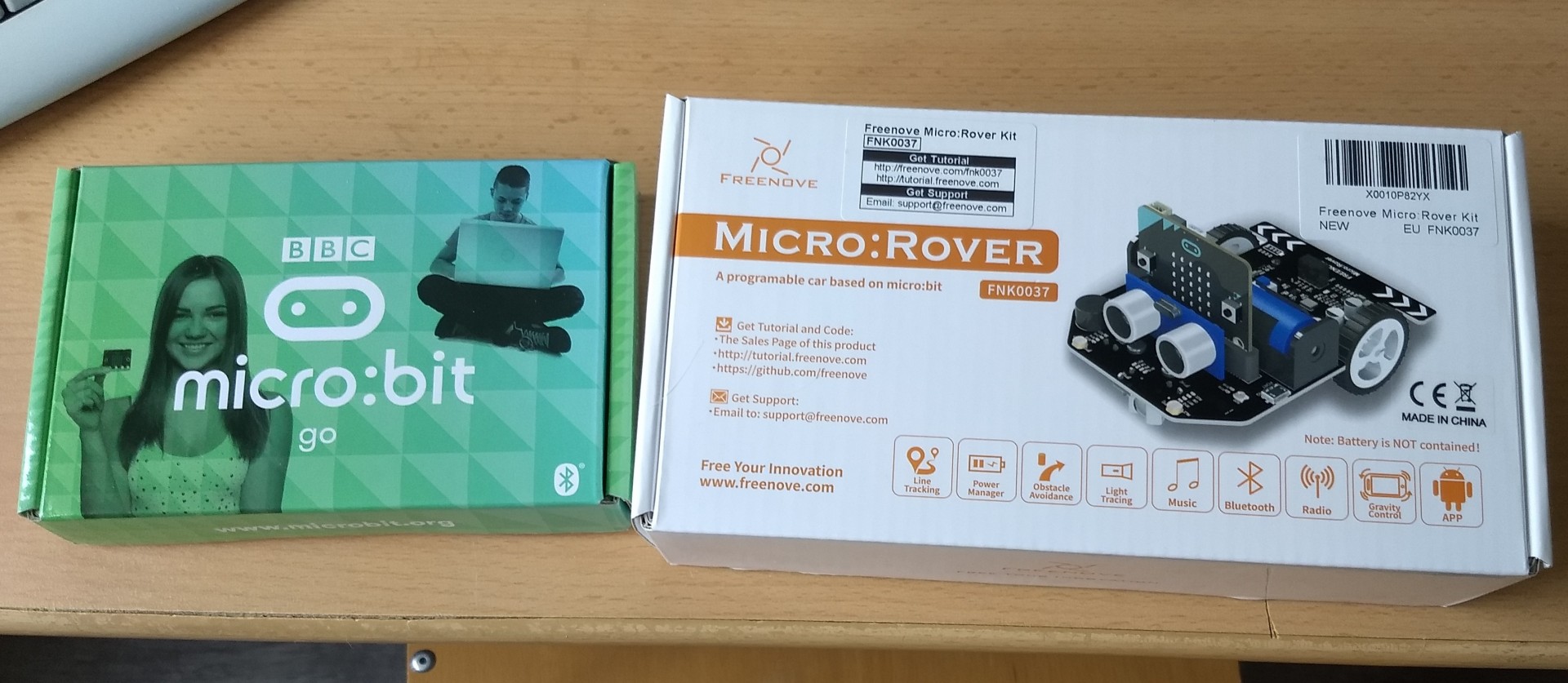 Meine selbsgekauftes Geburtagsgeschenk etwas mit Micro:Bit, ein kleiner Roboter und ein zusätzlicher Controller.