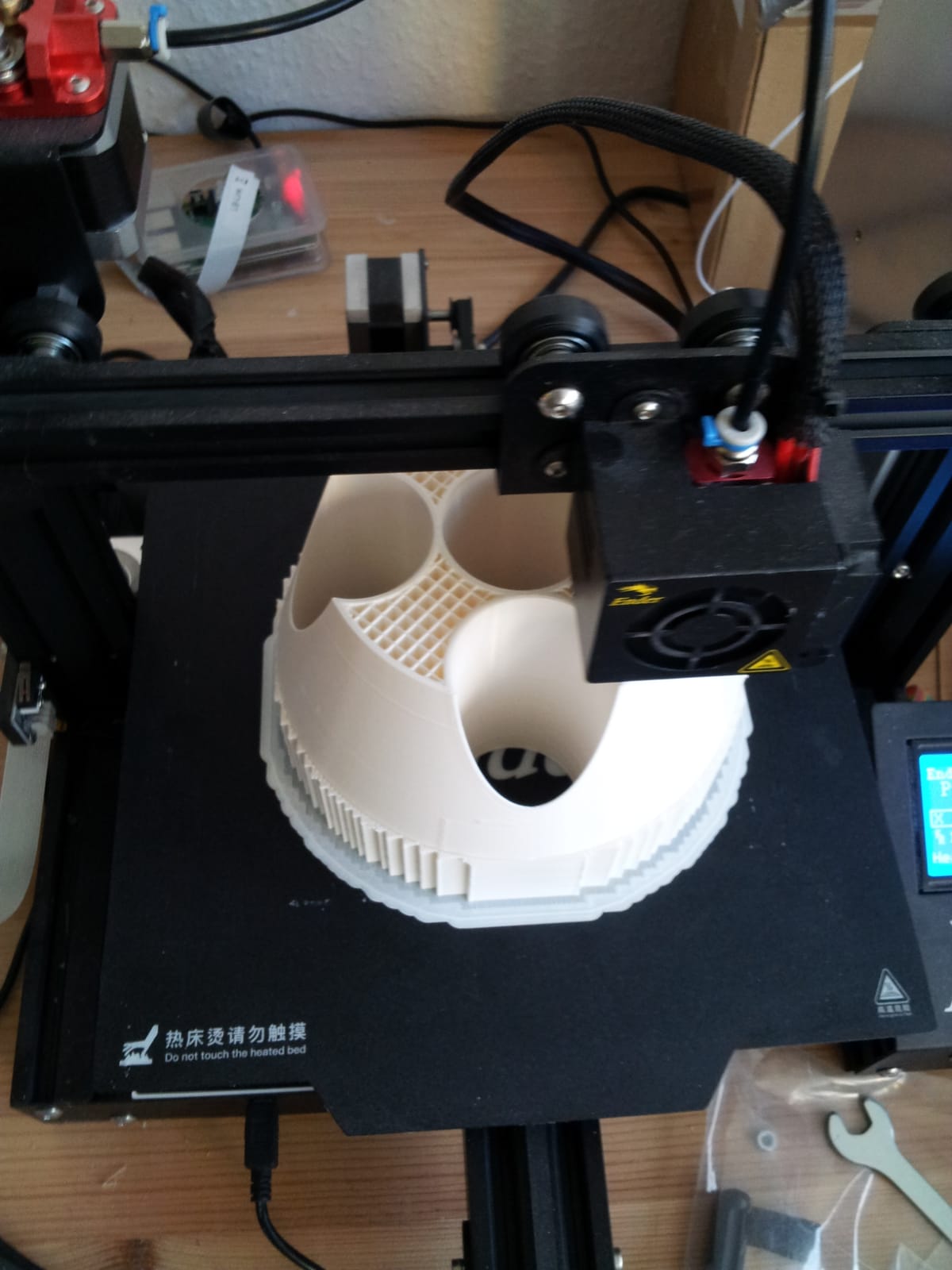 31.03.2020 - der erste vernüftige Druck auf dem 3D Drucker, nachdem ich den Extruder gegen eine Metallvariante ausgetauscht habe. Die Software zum Slicen verwende ich jetzt PrusaSlicer 2.2, komme besser als mit Cura zurecht.