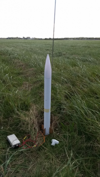 07/2014 - Die Modellrakete ist das letzte Mal gestartet, da die Elektronik versagt hat. Die Modellrakete hat sich ungebremst eingegraben.