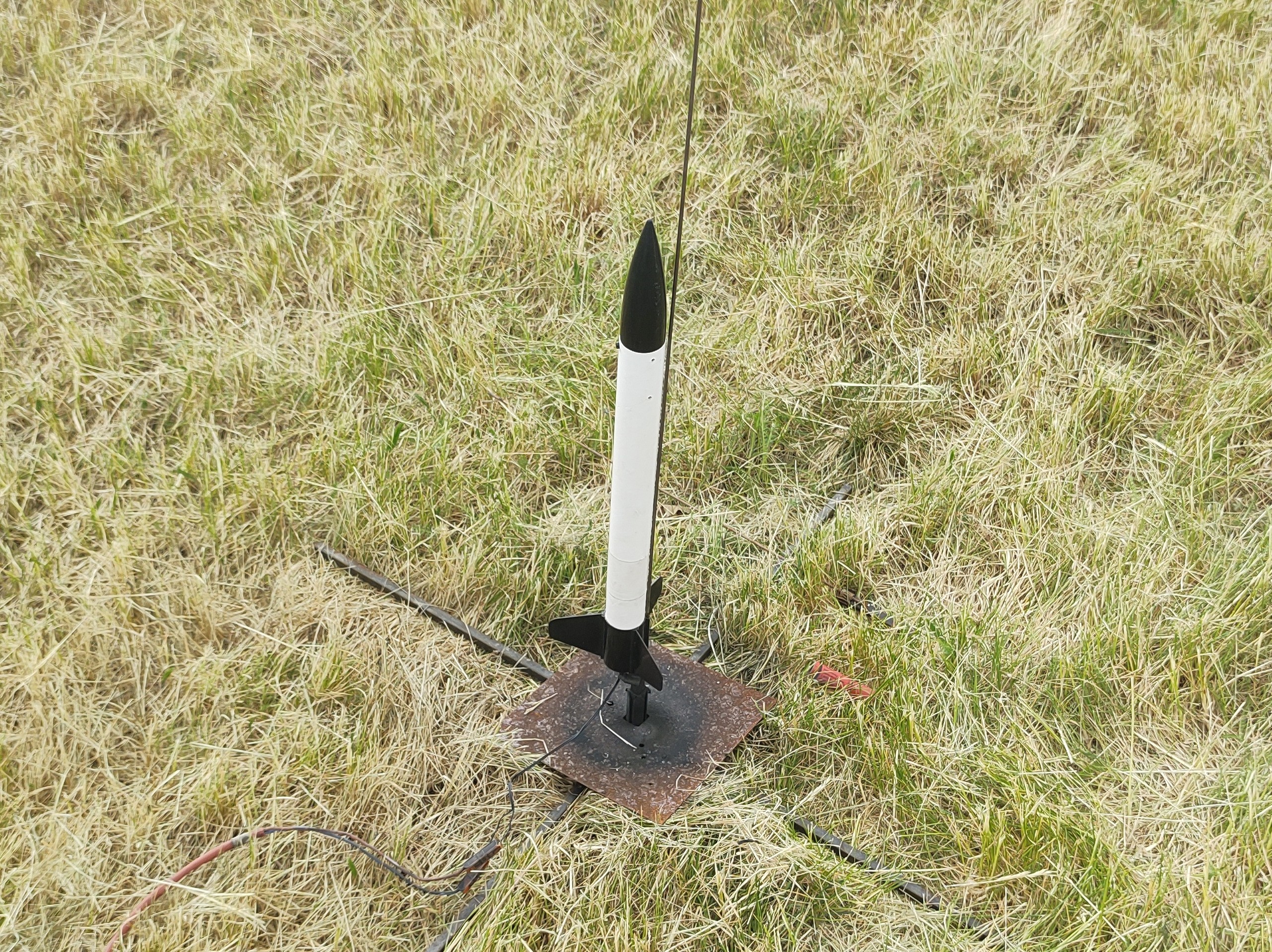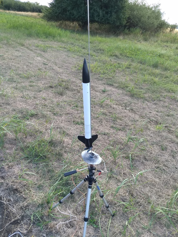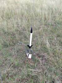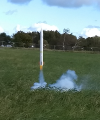 10.2017 - Erstflug der Modellrakete auf einem BC80, ca. 100m hoch, sauber gelandet.