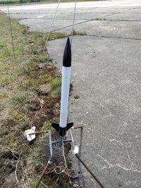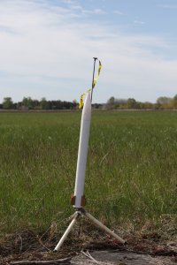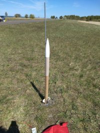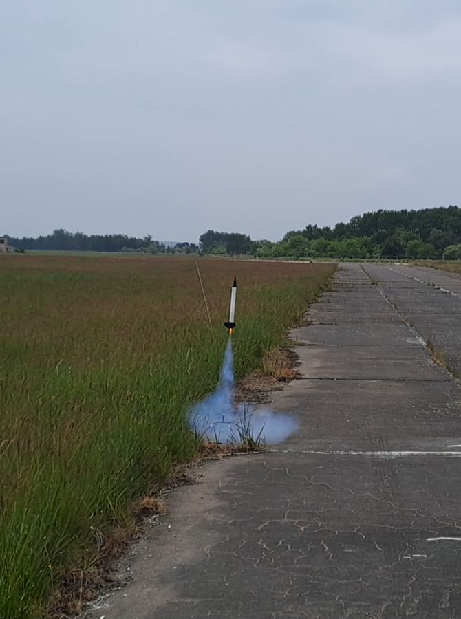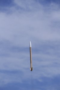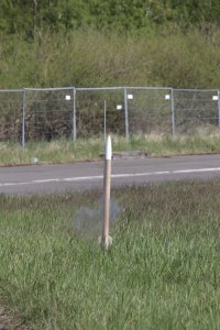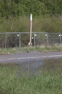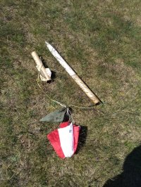 05.2018 - erneuter Flug dieser Modellrakete auf einem BC125 ohne Peak. Die Modellrakete flog auf 505m und landete nach einer Taumelbergung unbeschädigt im Gras.
