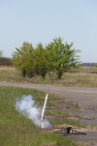 10/2013 - Die Modellrakete ist das erstemal geflogen, hat eine gute Höhe erreicht und ist sauber gelandet.