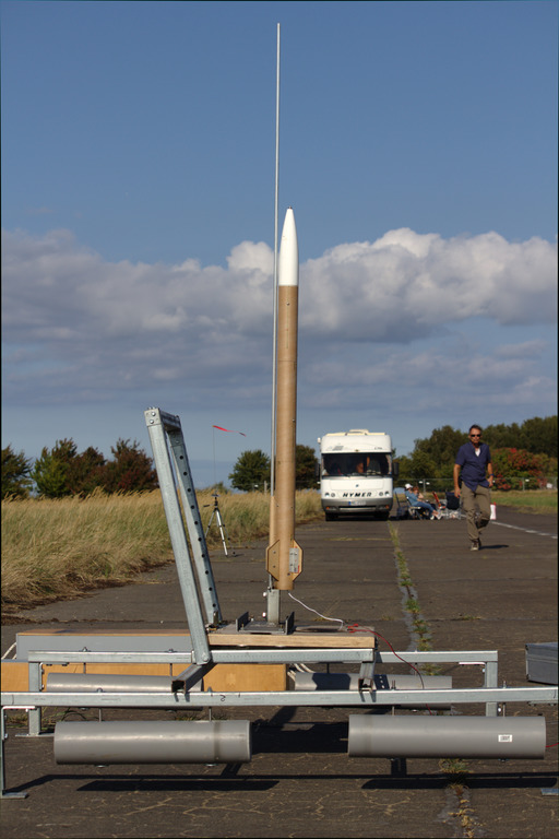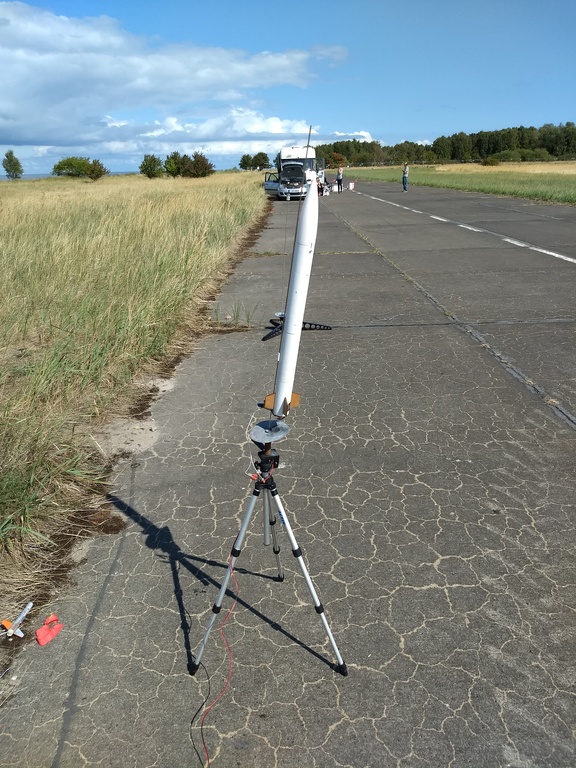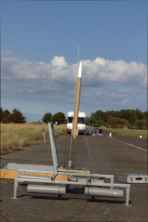 05.2018 - sie ist in Peenemünde geflogen, zweimal gestartet, einmal sauber gelandet, einmal Treibsatzprobleme mit einem Durchzünder. Ich muss den Antriebsteil wieder reparieren.