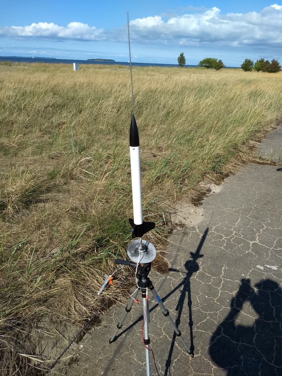09.2018 - in Peenemünde auf einem BC80 mit Peak geflogen, 134m Höhe erreicht und mit beiden Fallschirmen wieder gelandet.