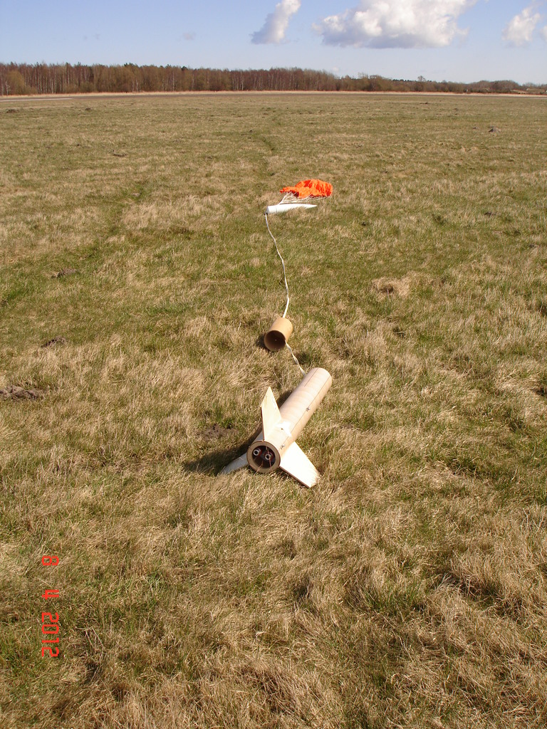 Der Start war top, der Flug war auch gut, aber irgendwie ist die Ausstossladung nicht raus gekommen. Ich werde wohl in Zukunft ein duales System verwenden, unabhängig von einander.