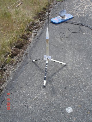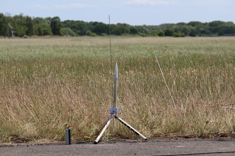 Meine kleinste Modellrakete, ein kleines Arbeitstier, aber immer zuverlässig. Sie hat inzwischen einen Kolben, diese Schutzwatte hat fast alle Modelle ramponiert.