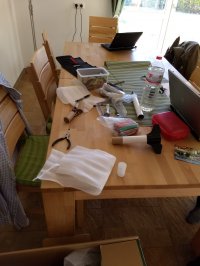 Morgens, der Rest schlief noch, habe ich an meinen Modellraketen gebaut. Heute war geiles Wetter, man kann es nicht anders sagen.