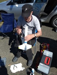 Meine Blank and White (18) hat sich die Treibsatzhalterung verabschiedet. Ich muss zu Hause das Raketenmodell zerlegen und wieder neu zusammensetzen, wenn ich die Treibsatzhalterung repariert habe.
