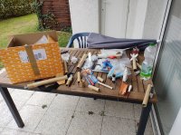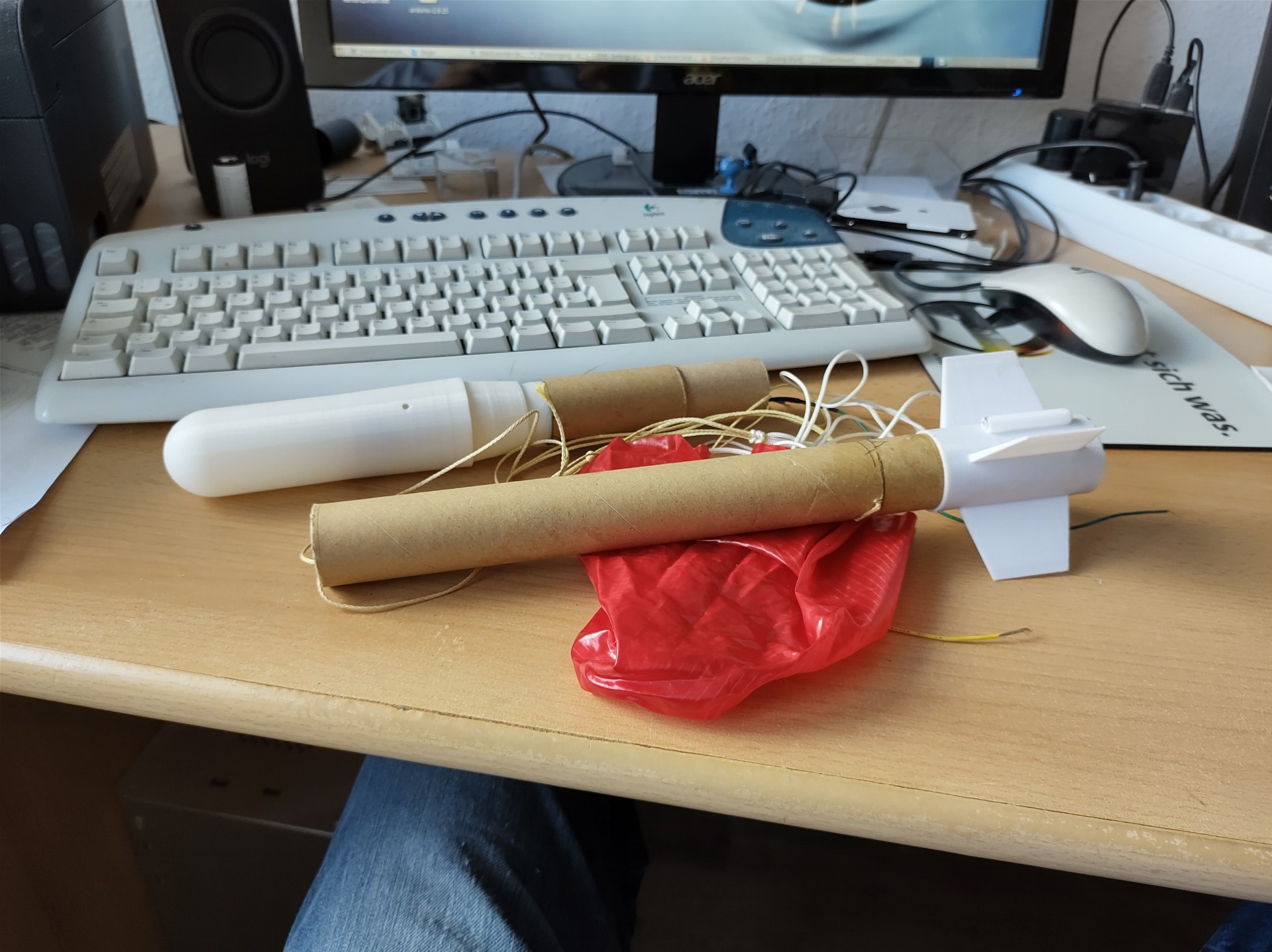 Alles gut gehalten, ich musste nur immer die Treibsätze suchen, weil sie hinten rausgeflogen sind. Die Teile müssen alle neu gemacht werden aus diversen Gründen, mir fehlen ein paar Treibsatzhalterungen und die Batterie muss auch irgendwie befestigt werden.