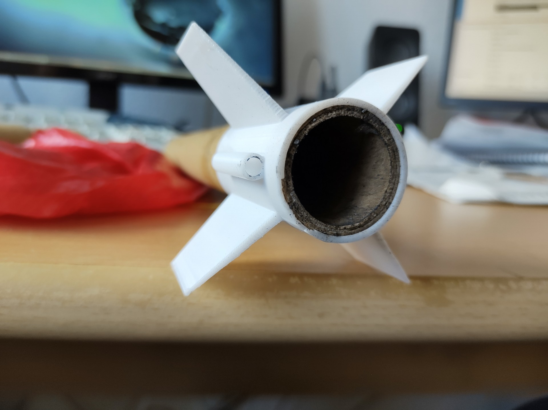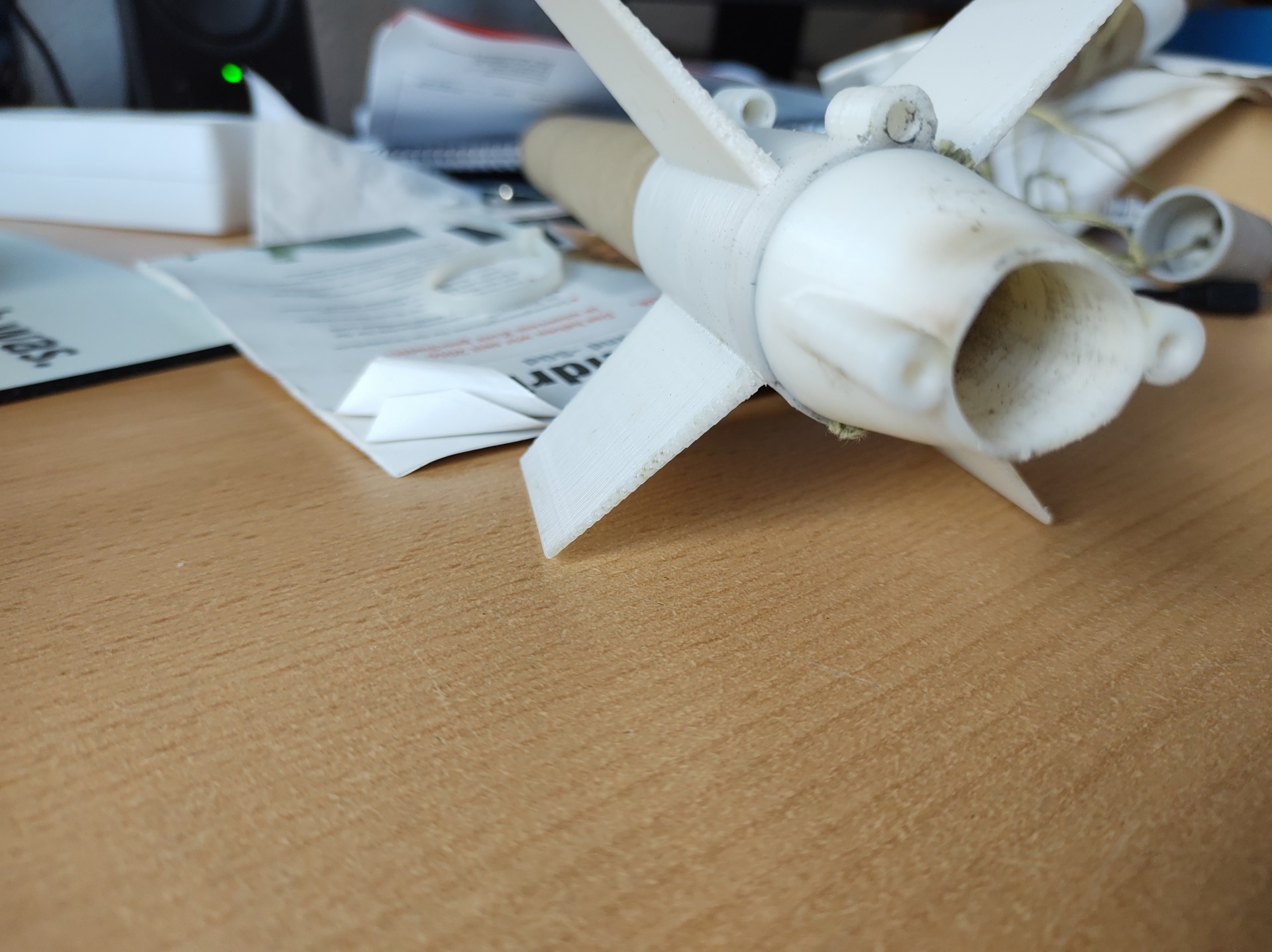 Ich habe meine Testmodellrakete zum starten gebracht, ich wollte eigentlich nur testen wie lange die gedruckten Teile aushalten. Mein besonderer Augenmerk lag dabei auf die Motorhalterung für einen 18mm Treibsatz.