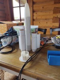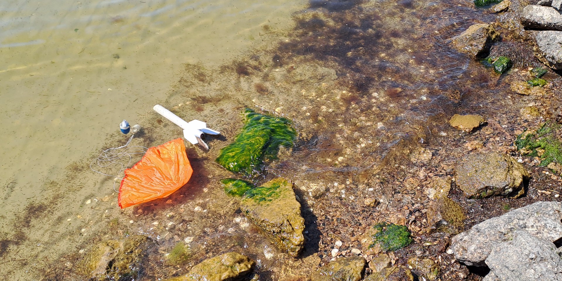 Die Wasserlandung hat es gut überlebt, keine Elektronik kaputt, weil keine drin war. Spitze, Körperrohr und Kolben sind ok. Das Treibsatzrohr muss ich neu machen, hat sich mit dem Treibsatz verbacken :)