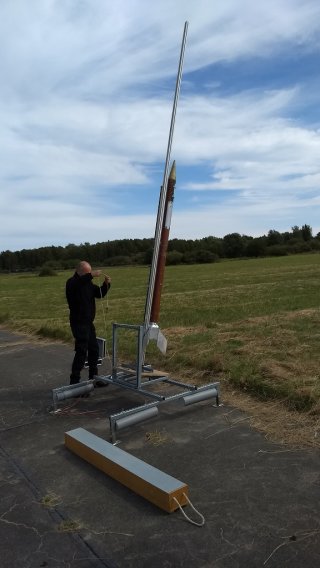 Frank seine Modellrakete flog top. Sie erreichte eine Höhe von ca. 500m mit 3xBC360, landete leider auf der Startbahn aus Beton. DIe Modellrakete hatte einige Schäden, die nicht mobil beseitigt werden konnten.