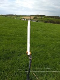 Ich habe die "Blank and White (18)" auf einen C6-5 nochmal gestartet, ich wollte den Altimeter Simple 2016 als Höhenmesser verwenden, wollte, ich habe eine Menge falsch gemacht, man oh man. Drei Luftlöcher a 3mm waren ja ok, aber man sollte die Elektronik nicht direkt auf die Luftlöcher schieben, dann habe ich vergessen die Elektronik und die Spitze zu fixieren. Wir haben aber alles wiedergefunden. Man lernt aus seinen Fehler.