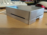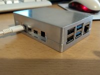 Das Aluminiumgehäuse für den Raspberry Pi 4, es ist fast optimal. Ich hatte ein kleines Problem mit dem orginalen µHDMI Kabel, der Stecker war 2mm zu dick. Ich habe die orginale Wärmeleitpaste nicht verwendet, es ist Wärmeleitfolie unterwegs. Die Temperaturen sind jetzt ein einem normalen Rahmen, 40°C Konsole, 50°C X ohne Anwendung.